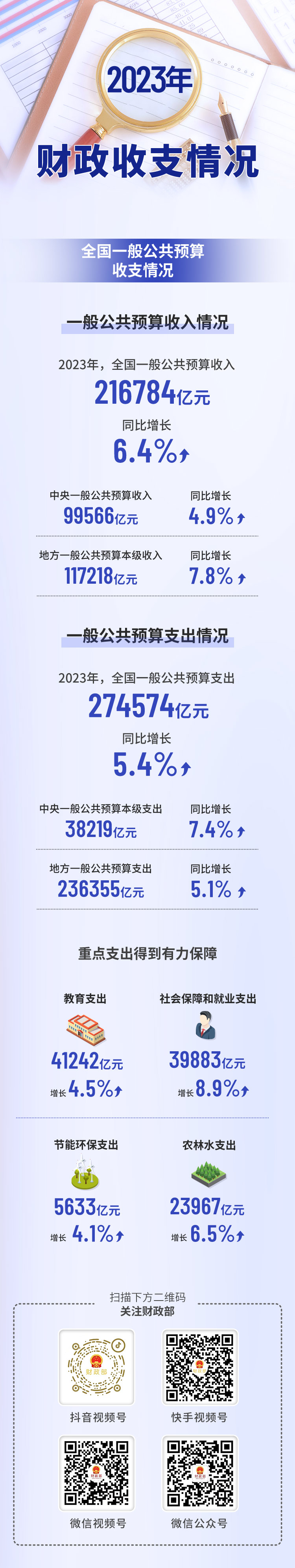财政部公布2023年财政收支情况