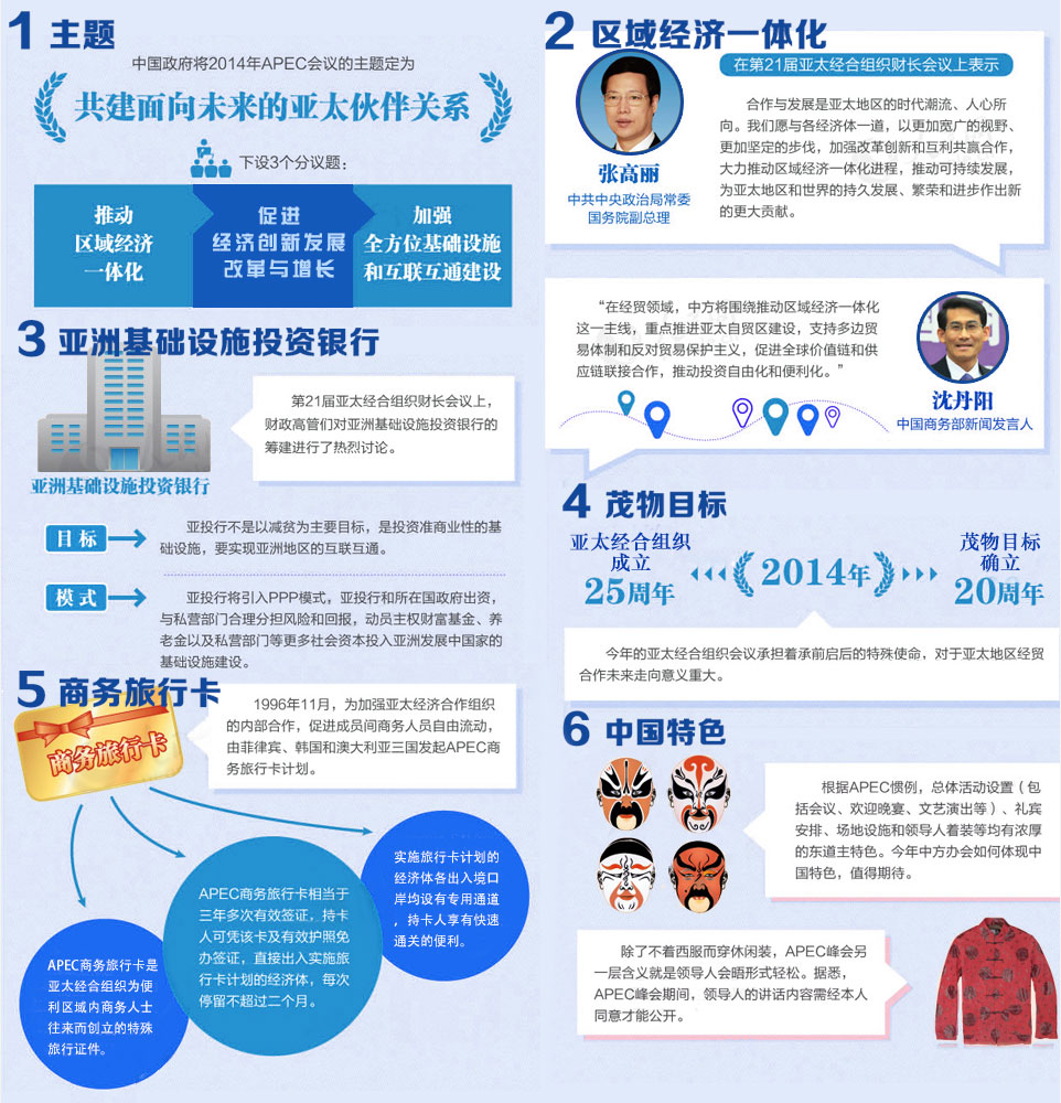 2014年是APEC成立25周年,也是中国时隔13年再次举办APEC会议。过去13年,不仅是中国快速提升经济实力的13年,更是中国逐步参与国际经济事务、并日益扮演主要角色的13年。2001年上海APEC会议时,中国GDP刚刚突破一万亿美元;13年后,中国经济总量即将迈入10万亿美元关口,正在向世界头号经济体进军。 APEC会议是开展多边、双边外交的重要机会。中国将借“主场外交”之利,提出宏伟、清晰的合作理念和合作路线图,并映射出一个更熟悉国际规则、更具有国际视野、更熟练推行国际战略的中国形象。由此,APEC在其发展进程中也将刻下独特的、积极的中国烙印。