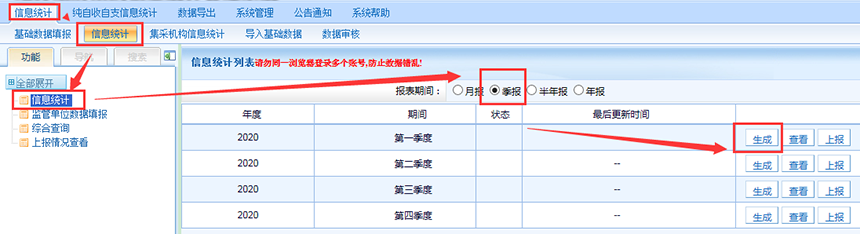 信息统计报表根据“数据期间”进行时间划分,用户在填报基础数据时,首先要选择的就是数据期间。