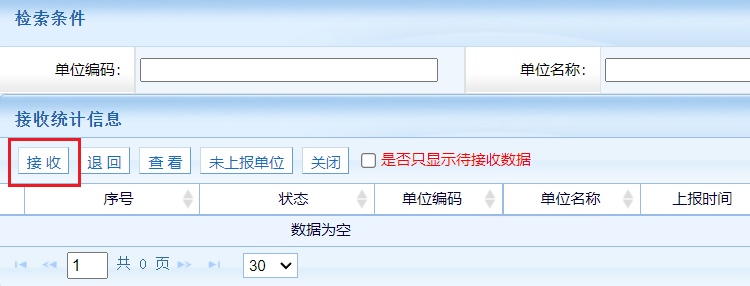 点击接收按钮,系统弹出如下接收页面,选择待接收数据,点击接收。
