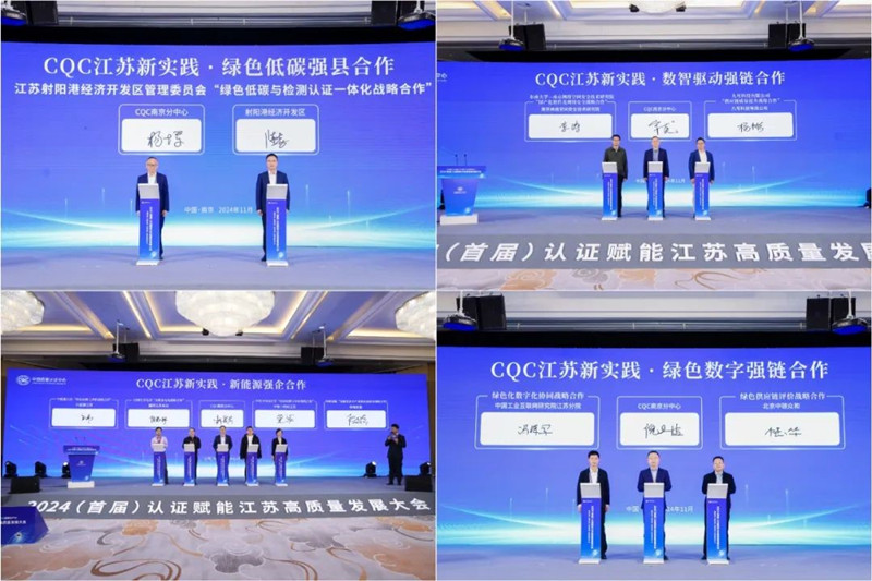 11月12日,由中国质量认证中心主办的2024(首届)认证赋能江苏高质量发展大会在南京成功举办。会议得到江苏省发展和改革委员会、江苏省工业和信息化厅、江苏省生态环境厅、江苏省市场监督管理局指导。